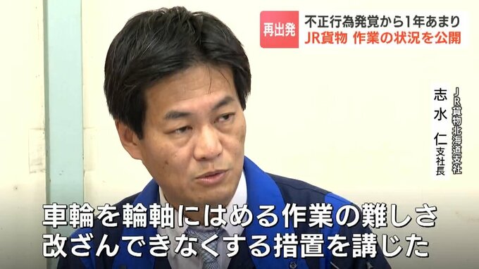 「車輪を輪軸にはめる作業の難しさ、改ざんできなくする措置を講じた。これからも安心して鉄道貨物輸送をご利用いただけると理解してほしい」