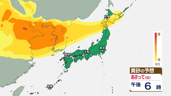 日曜から月曜にかけて広範囲で黄砂が予想されます。