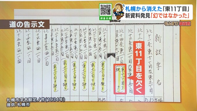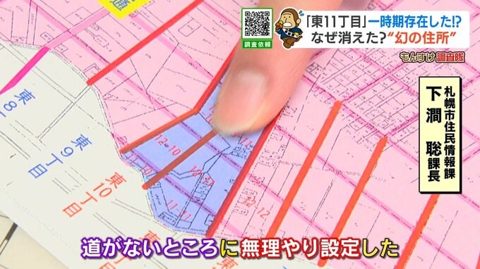 「一旦、1934(昭和9)年の時は、東11丁目を設定したが、道がないところに無理矢理設定した経緯がある」