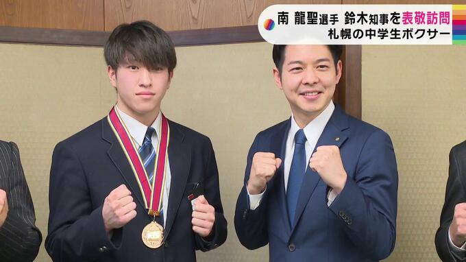 全国制覇した札幌市の中学生ボクサー南龍聖選手が鈴木知事を表敬訪問 実は知事も元ボクシング部… 北海道 2022年12月13日(火) 23:56 国内 札幌の中学生ボクサー・南龍聖(みなみ・りゅうせい)選手が、鈴木知事を表敬訪問し、夏の大会で全国制覇した報告を行いました。 表敬訪問したのは、札幌の中学3年生・南龍聖(みなみ・りゅうせい)選手です。 …