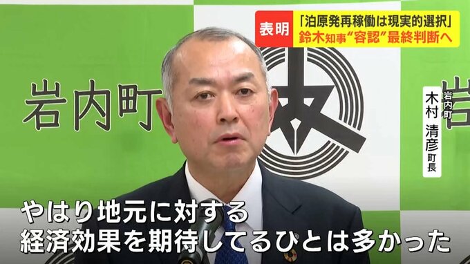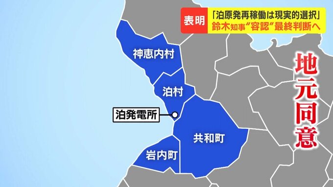 国が再稼働に対する理解を求めてきた泊原発の地元4町村は…17日に泊村、26日に神恵内村と共和町。そして28日岩内町が同意を表明しました。