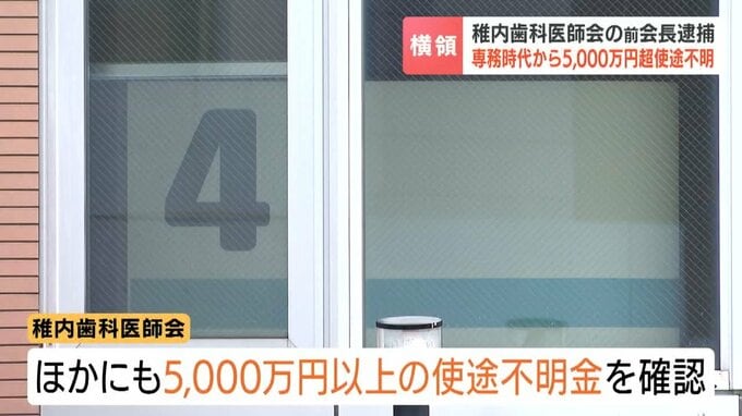 北海道稚内市にある稚内歯科医師会の口座から約370万円を横領した疑いで前の会長が逮捕された事件で、歯科医師会の口座に5000万円を超える使途不明なやり取りがあることがわかりました。