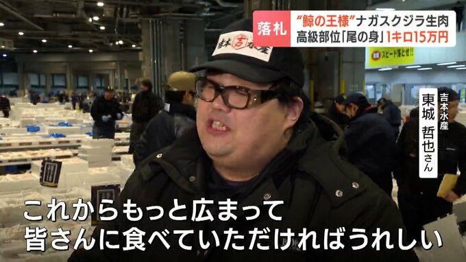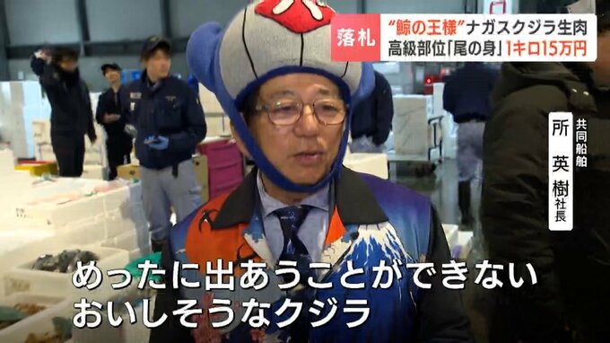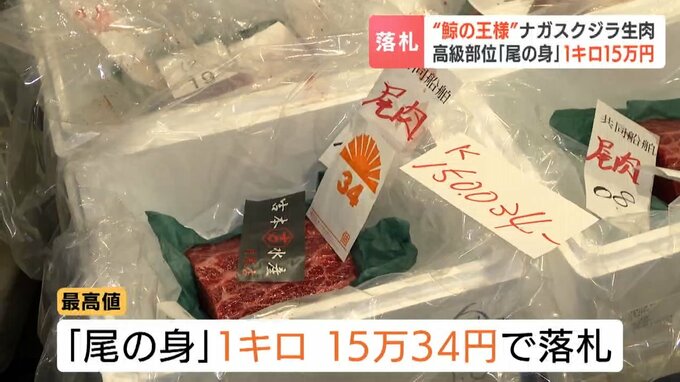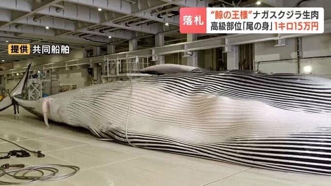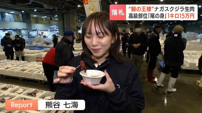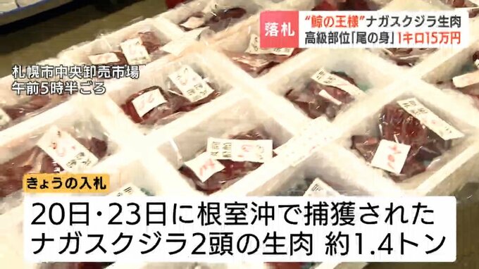 「鯨の王様」と呼ばれるナガスクジラの生肉が札幌の市場で取り引きされ、最高値で1キロ15万円余りで落札されました。
