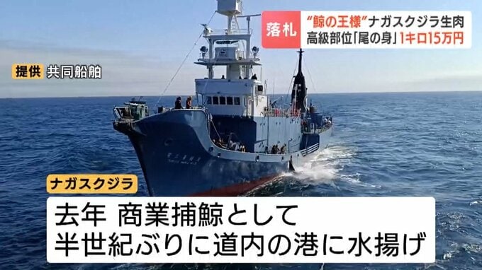 去年、商業捕鯨としておよそ半世紀ぶりに北海道内の港に水揚げされたナガスクジラですが、今年も捕鯨母船の「関鯨丸」が水揚げし、札幌の市場に届けました。