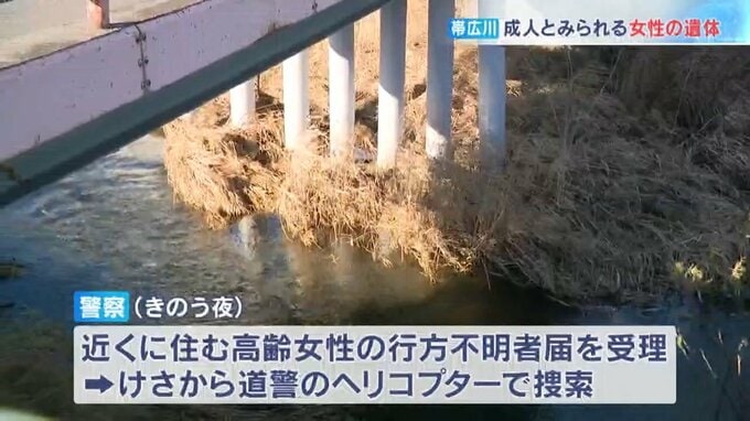 29日午前10時すぎ、帯広市西8条南3丁目の帯広川で、成人とみられる女性の遺体が見つかりました。