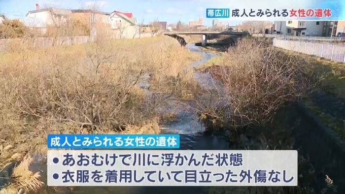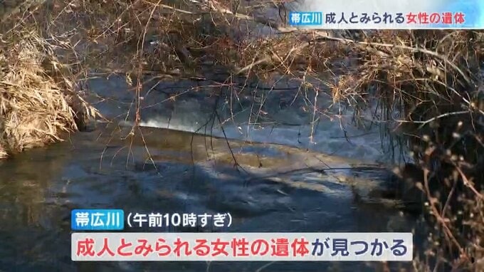 29日午前、北海道帯広市内の川の中で、成人とみられる女性の遺体が見つかり、警察が身元の特定を進めています。