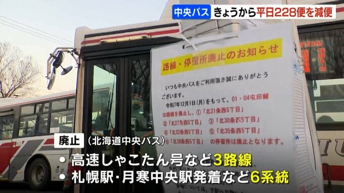 北海道中央バスとじょうてつバスは運転手不足を背景に、1日のダイヤ改正で札幌圏の路線バスの廃止と減便を行いました。