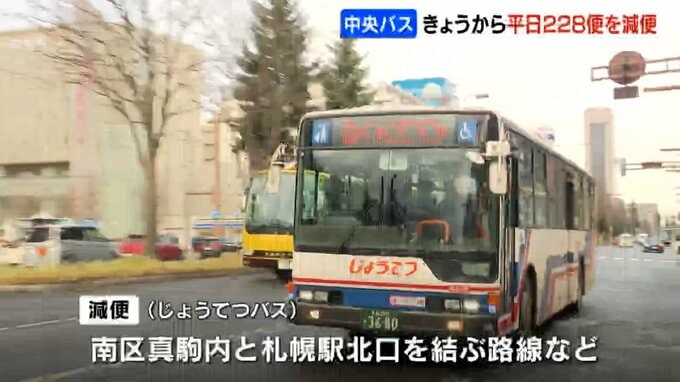 また、じょうてつバスも1日から南区真駒内と札幌駅北口を結ぶ路線などで減便しています。
