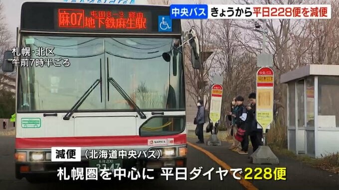 北海道中央バスで減便になったのは、札幌圏を中心に平日ダイヤで228便です。