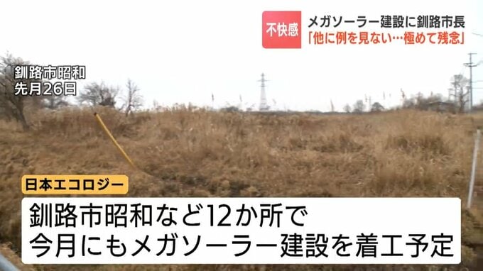 大阪の「日本エコロジー」は現在、工事を中止している場所を除く釧路市昭和など、12か所で12月にもメガソーラー建設を着工する予定です。