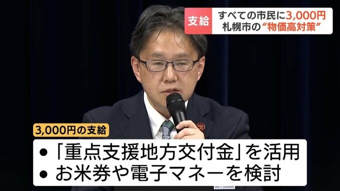 「全市民に対しまして1人3000円の支給をするという内容でございます、国からもできるだけ早い支給をということで要請を受けておりますので、デジタル技術の活用を前提に検討しております」