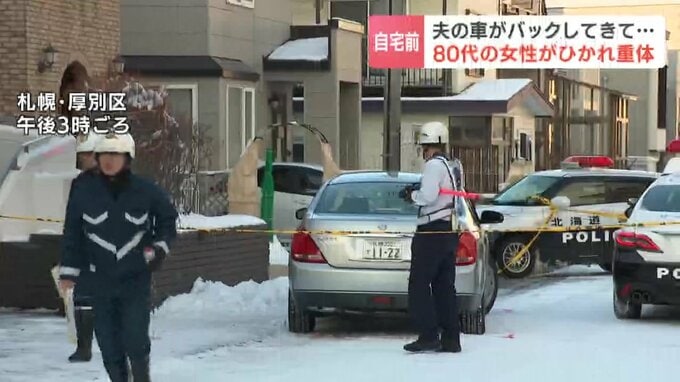 夫の車がバックしてきて下敷きに…80代女性が意識不明の重体 買い物に出かけようと車庫から車を動かした際に 札幌市厚別区 2025年12月4日(木) 17:50 国内 札幌市厚別区で、80代の女性が、バックしてきた夫の運転する車にひかれて下敷きになり、意識不明の重体です事故があったのは、札幌市厚別区大谷地西4丁目の住宅前の路上です。4日午後2時すぎ、80代の女性が、80代…
