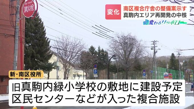 建設予定地は、区役所東側の旧真駒内緑小学校の敷地。