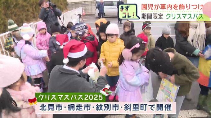 子どもたちが装飾する「クリスマスバス」は、オホーツク地方の4つの自治体で実施され、北見では、10日からクリスマス当日まで運行します。
