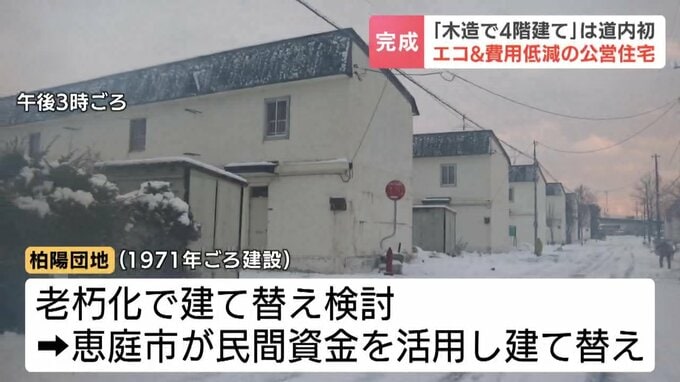 恵庭市では、1971年ごろに建てられた市内最大の公営団地「柏陽団地」が老朽化し、市はPFIと呼ばれる民間資金などを活用する方法で建て替えを計画。