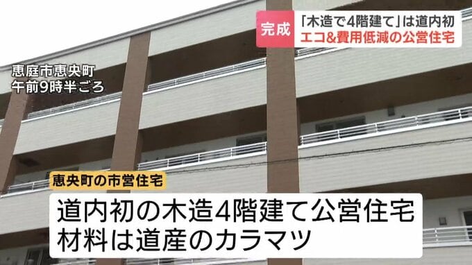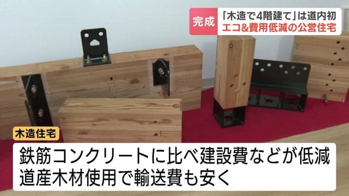 また、メーカーによりますと、木造住宅は鉄筋コンクリートに比べ、建設費やメンテナンス費用を抑えられ、北海道産の材料を使えば輸送費も安くなることから、大規模な建て替えを計画する自治体の負担軽減につながるとしています。