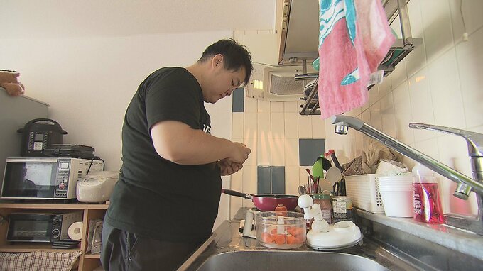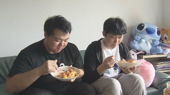 この日のお昼ご飯は、ちかさんが大好きなオムライス。料理が得意なきみちゃんが台所に立ち、家事が得意ではないちかさんはソファで完成をじっと待ちます。