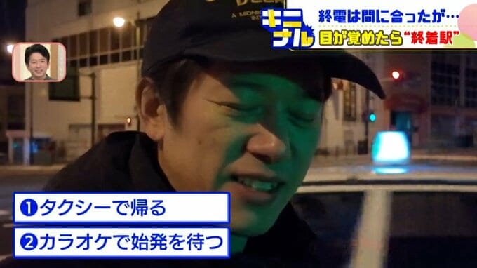 男性「2通り。タクシーで帰るかカラオケで始発を待つか」