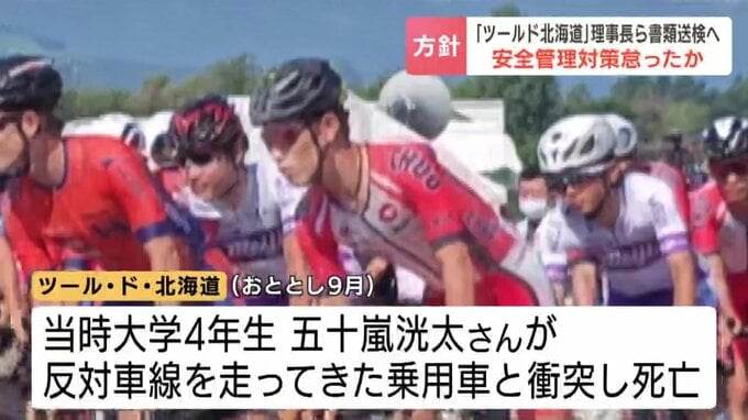 2023年、自転車ロードレース「ツール・ド・北海道」に出場した選手が乗用車と衝突し死亡した事故で、警察が主催した法人の理事長ら3人を書類送検する方針を固めたことがわかりました。