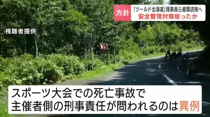 警察は事故の危険性を予測できたにも関わらず安全管理対策を怠ったなどとして、レースを主催した「ツール・ド・北海道協会」の理事長ら3人を業務上過失致死の疑いで書類送検する方針を固めたことが捜査関係者への取材でわかりました。