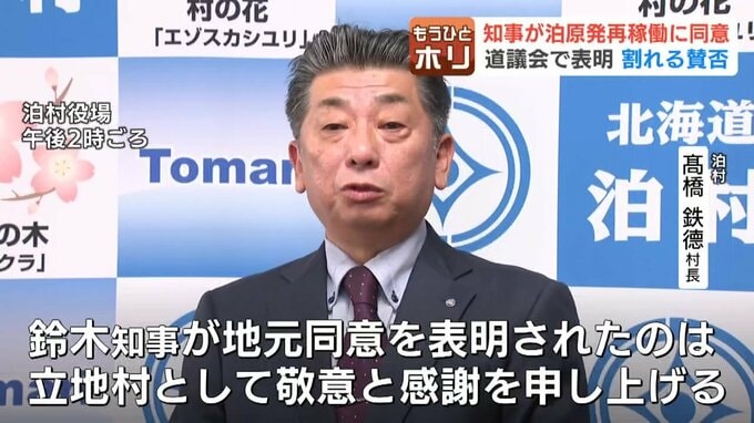 「道内でいろいろな意見がある中で、鈴木知事が地元同意を表明されたのは、立地村として敬意と感謝を申し上げます。引き続き、住民の安全安心の確保のために北海道と連携を密にしながら、避難計画・防災計画含めて国のほうに求めていきたい」
