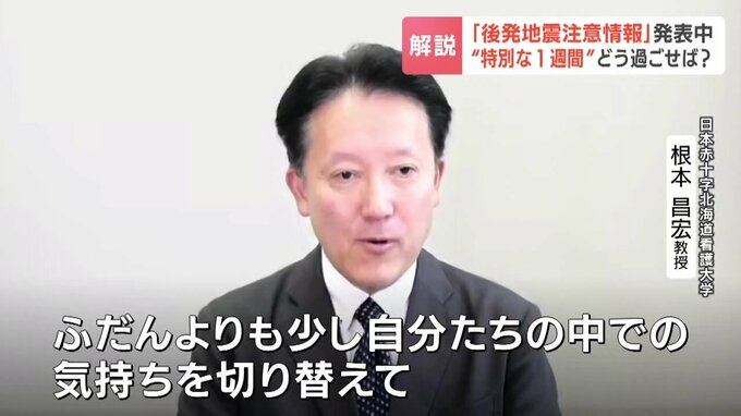 避難行動など防災に詳しい日本赤十字北海道看護大学の根本昌宏教授は、この1週間の過ごし方について備えの気持ちを高めることが大切だといいます。