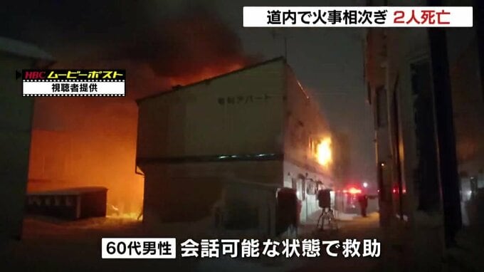 また、15日午前1時半過ぎには、苫小牧市の2階建て共同住宅でも火事があり、2階の一室から60代の男性が救助されました。