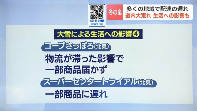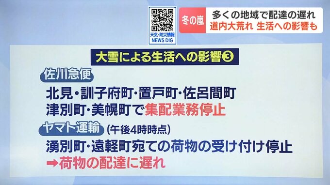 こちらも、北海道内の多くの地域で配達の遅れが出ているということです。
