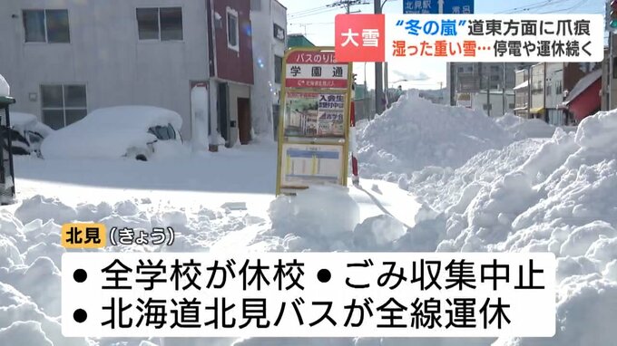 北見市では道路の除雪が追いつかず、16日も市内のすべての学校が休校しました。