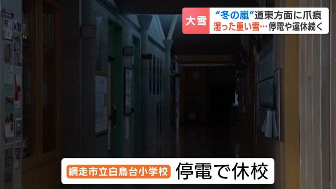 網走市内のこの小学校は電気が届かず、授業が難しくなったため休校となりました。