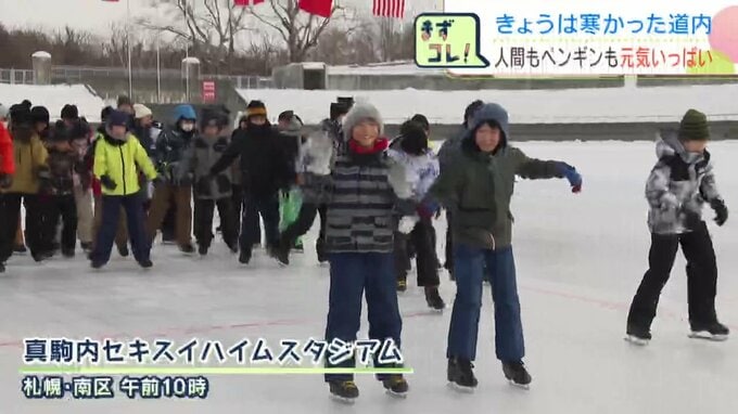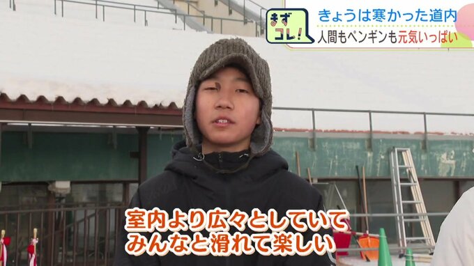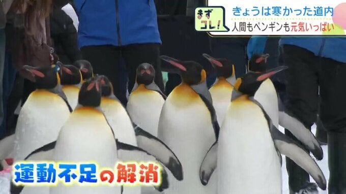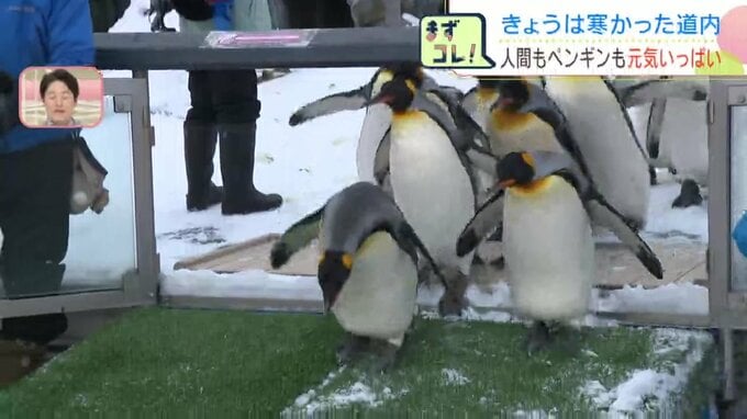日中も気温が上がらず寒かった北海道内ですが、子どもたちもペンギンも元気に運動していました。