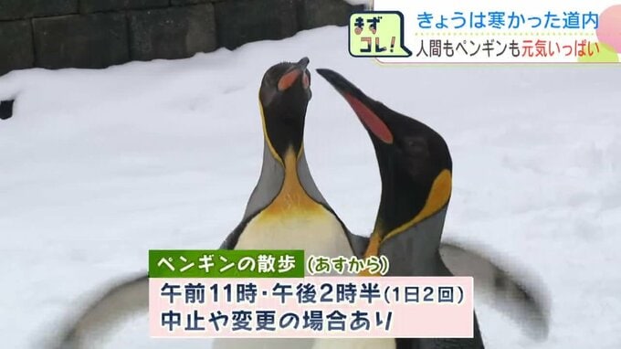 17日の北海道内は、とても寒い1日でしたが、ペンギンたちは元気にお散歩です。