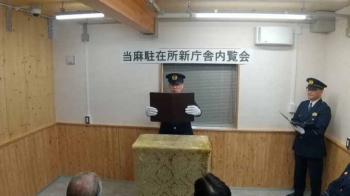 当麻駐在所の廣瀨祐司所長は、内覧会で「気が引き締まると同時に大きな喜び。治安維持に精励し、全力で取り組みたい」と決意を語りました。
