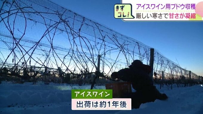 収穫されたブドウがアイスワインとして出荷されるのは1年後で、楽しめるのは2026年のクリスマスになりそうです。