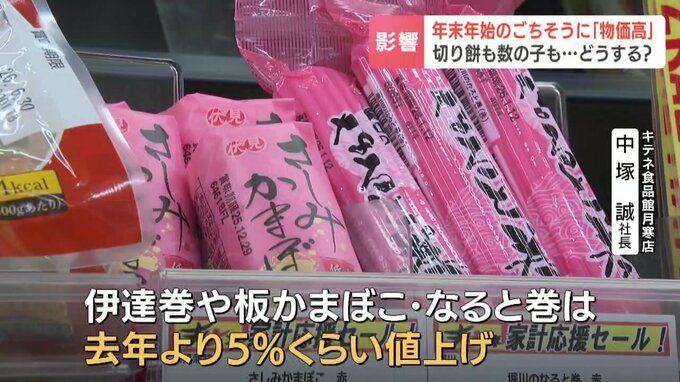 「伊達巻や板かまぼこ・なると巻は、去年より5%くらい値上げ」
