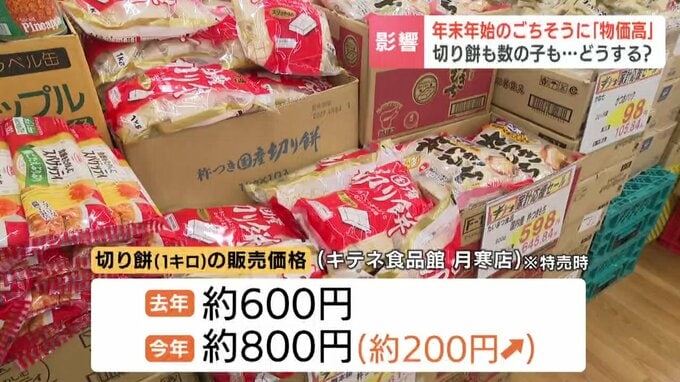 札幌市内のこちらのスーパーでは、切り餅の販売価格が、2024年までは1キロ約600円でしたが、2025年は、800円ほどに値上げせざるを得ないそうです。