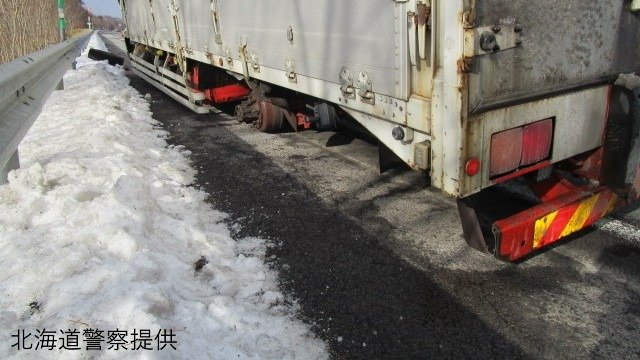 18日午前11時18分ごろ、札幌方向に走行していた大型トラックの左後ろのダブルタイヤと呼ばれるタイヤ2本のうちの外側のタイヤが外れました。