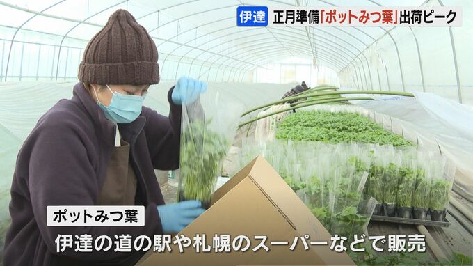 正月を前に、北海道伊達市の農家では、家庭で育てながら繰り返し収穫できる「ポットみつ葉」の出荷がピークを迎えています。