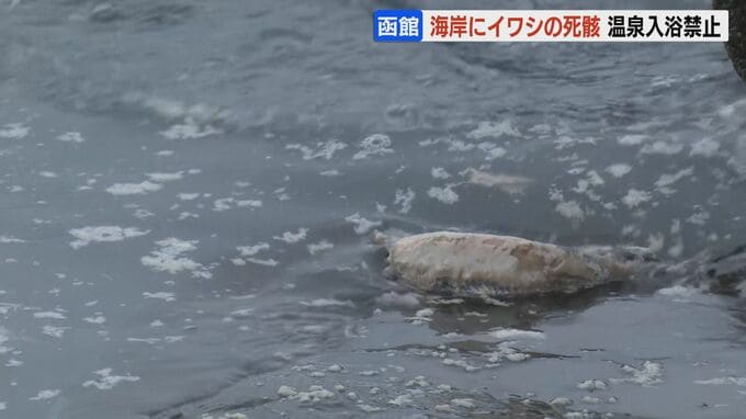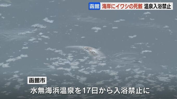 死骸の一部は、近くの海岸に湧く露天風呂「水無海浜温泉」の浴槽にも入り込んだため、函館市は衛生上の観点から17日から当面の間、入浴禁止としました。