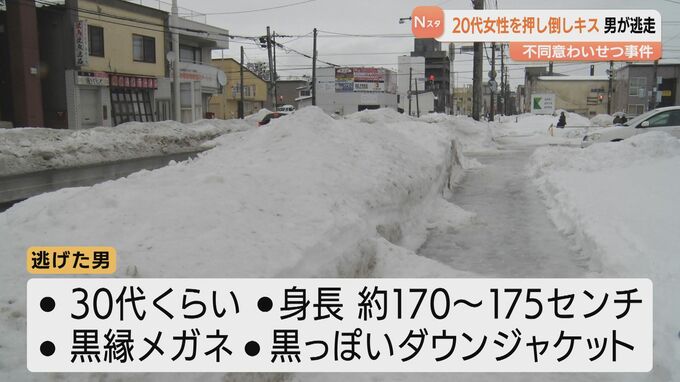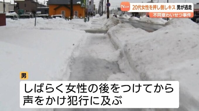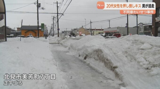 21日朝早く、北海道北見市の歩道で、20代後半の女性が後ろから来た男に押し倒され、無理やりキスをされました。男は、現場から逃走しています。