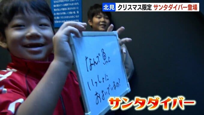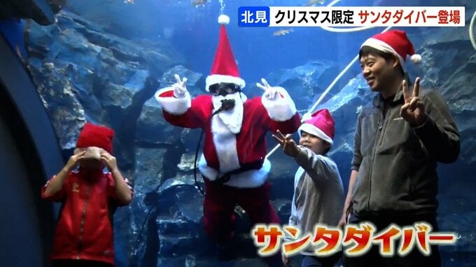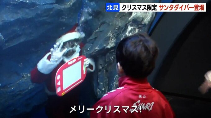 クリスマスまであと3日。北海道北見市の水族館では、水槽の中に現れるサンタクロース姿のダイバーが子どもたちを喜ばせています。