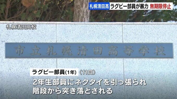 北海道札幌市の札幌清田高校のラグビー部で、1年生の部員が複数の上級生から暴力行為などのいじめを受けたとして、18日付で無期限の活動停止となりました。