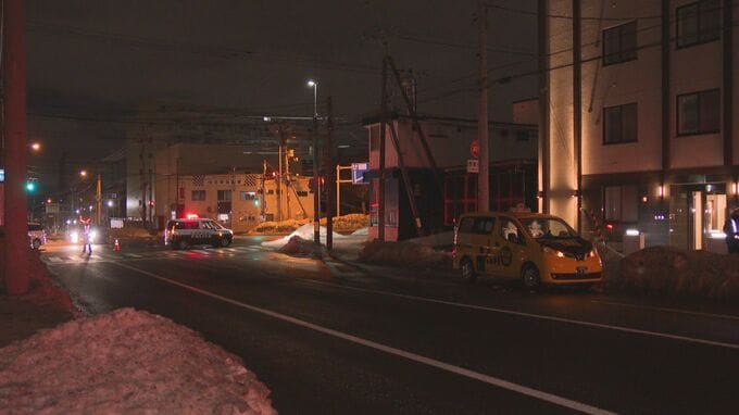 25日夜、札幌市豊平区の交差点で、左折のタクシーが、横断歩道をわたっていたとみられる30代くらいの女性をはねました。女性は、一時タクシーの下敷きになり、重傷を負いました。