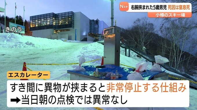 小樽市のスキー場で5歳の男の子がエスカレーターのすき間に挟まり死亡した事故で死因は窒息死だったことが分かりました。