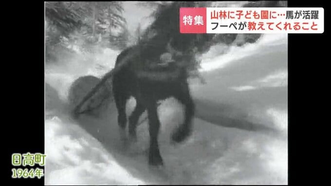 この映像は、1964年の日高町。『馬搬』は、昔の日本では、よく見られる光景でした。