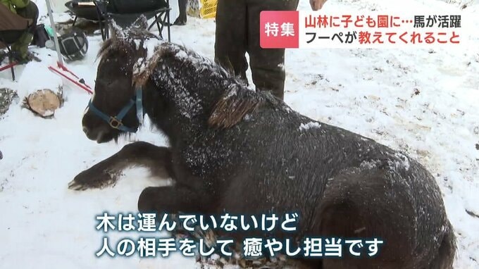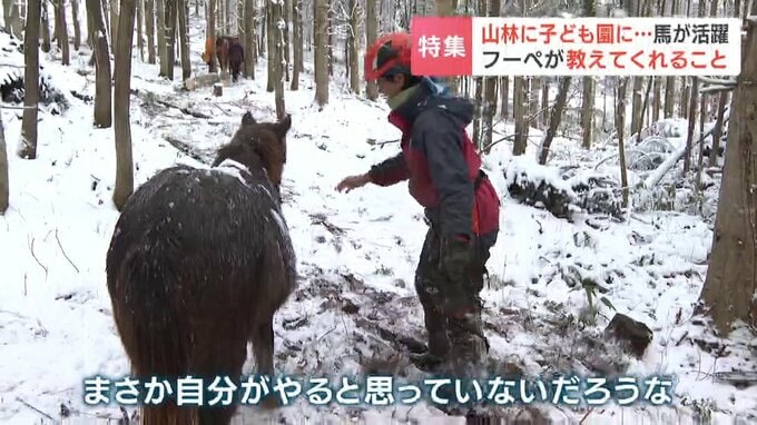野谷さんは、フーペは今回はみんなの癒し担当でしたが、今後は馬搬、馬耕などの牽引の仕事をしてもらいたいということです。