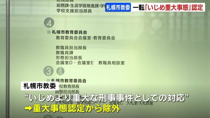 当時、札幌市教委はいじめより重大な刑事事件としての対応と捉え重大事態と認定していませんでした。