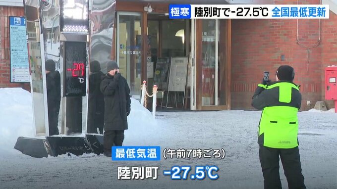 【マイナス27・5℃】「寒くて鼻の毛も凍る体験ができてうれしい」 北海道で今季最低気温を更新 極寒ならではの神秘的な現象も 7日朝にかけて厳しい寒さ続く見込み 2026年1月6日(火) 12:00 国内 上空の寒気が強まり、北海道内はすべての地点で氷点下の気温となっています。十勝地方の陸別町では、6日朝の最低気温がマイナス27・5℃と、今シーズンの全国最低を更新しました。宝石のように輝くダイヤモンドダス…