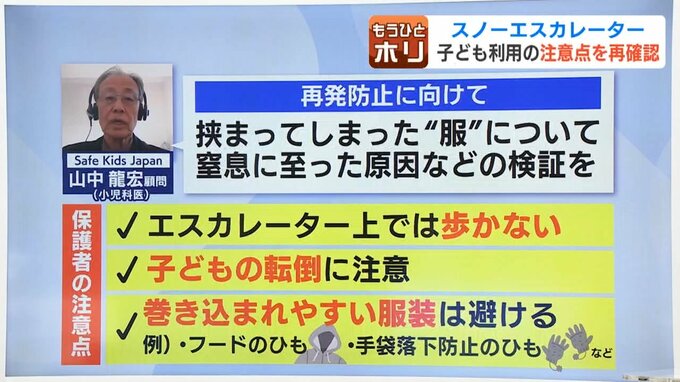 まず、再発防止に向けてですが、今回、服が巻き込まれて首元が圧迫されたことから、窒息に至った“衣服”の検証を提言しています。
