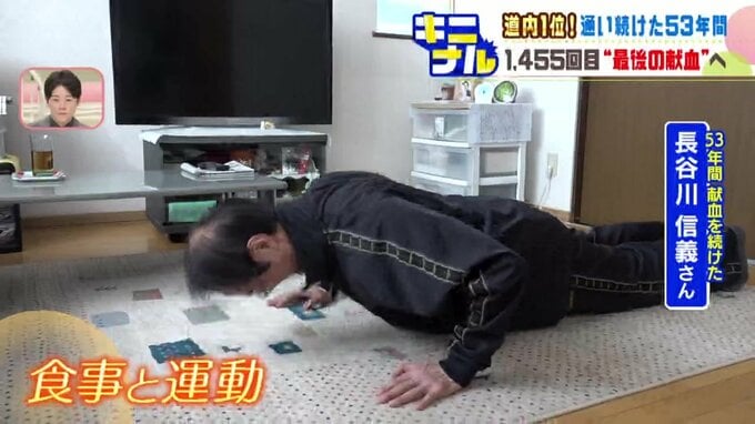 「健康でないと献血ができないということがありまして、食事と運動に気を付けて生活しています。ありきたりですけど、暴飲暴食を避けるとか体にいいものをバランスよくということで」